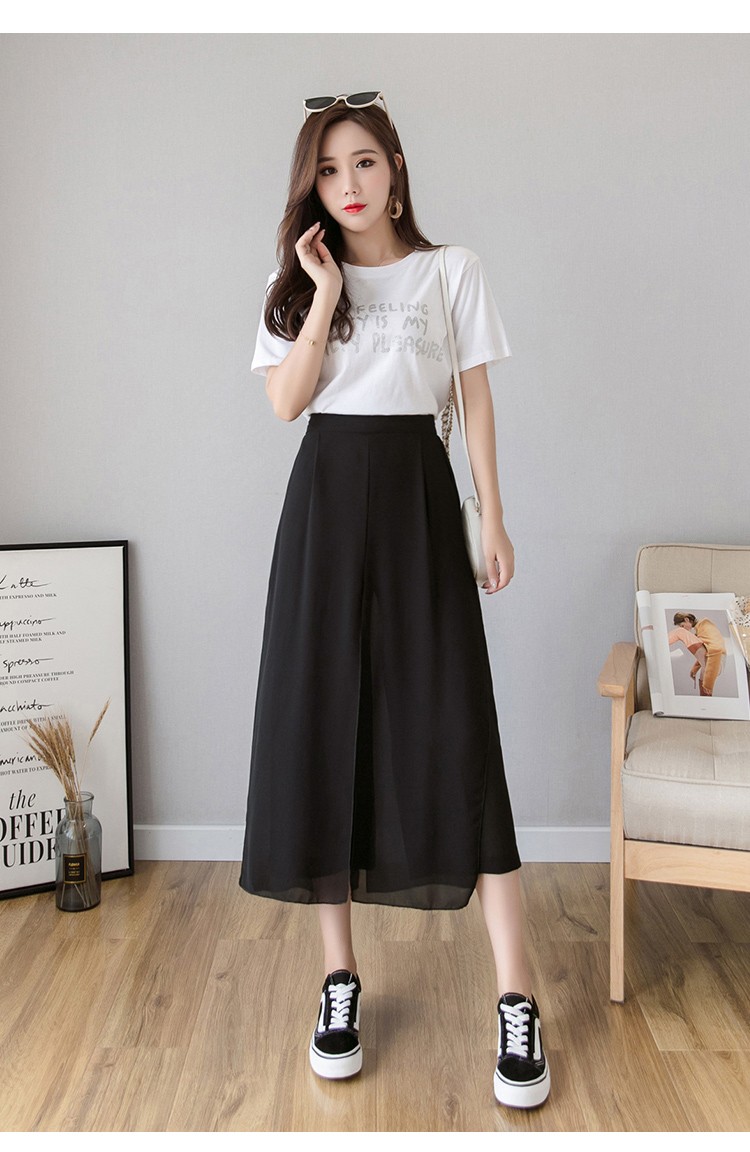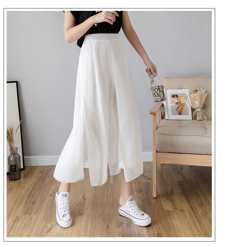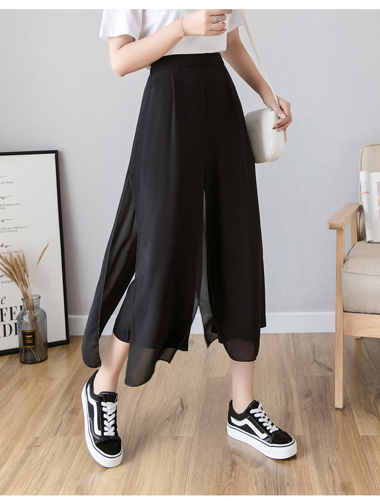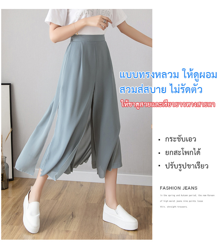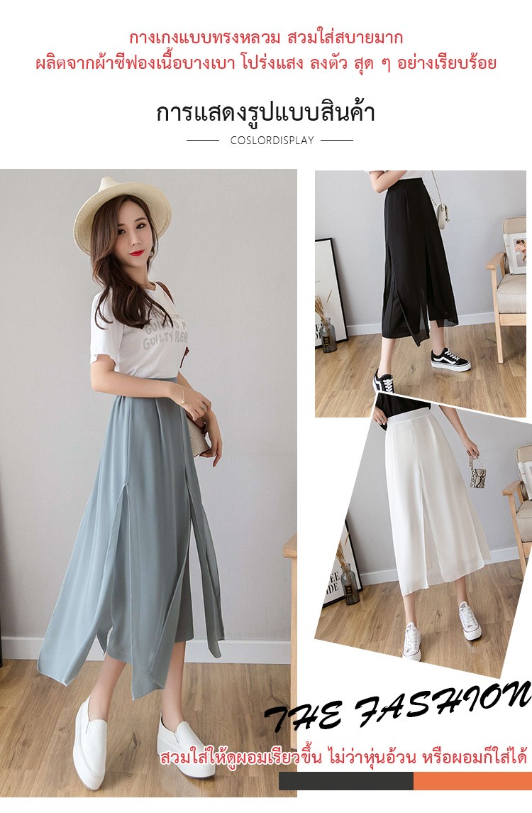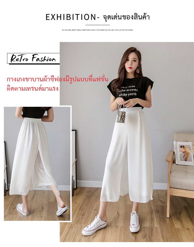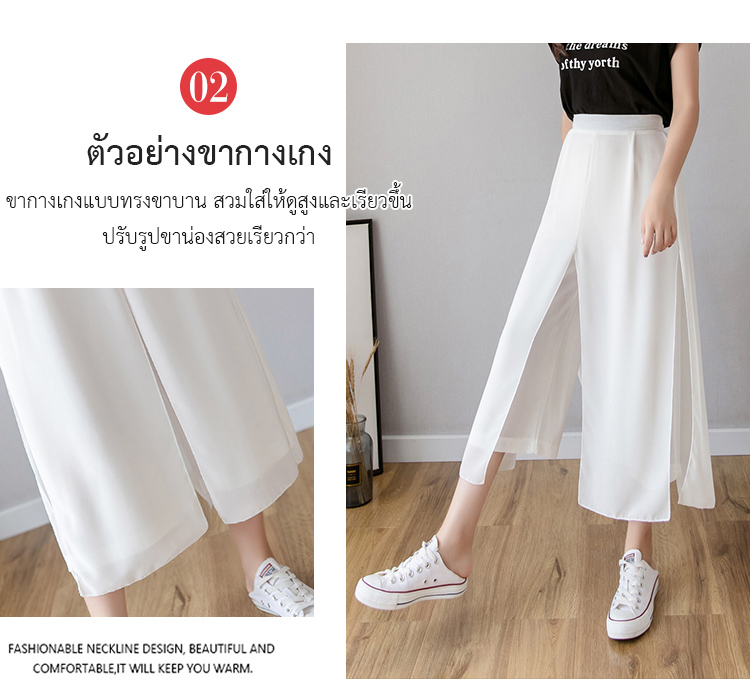 กางเกงขากว้างผ้าชีฟองสองชิ้นปลอม